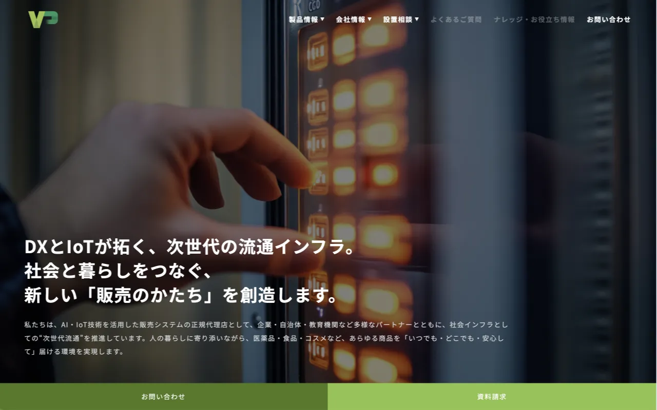 株式会社ブイシンクパートナーズ 様WordPressを活用したオウンドメディア型コーポレートサイトのリニューアルを担当しました。情報発信力とSEOを意識したサイト構成を設計し、キーカラーであるグリーンを基調に、次世代IoT自動販売機を展開する企業としての信頼性・先進性が伝わるデザインに刷新。デザインからフロントエンド実装まで一貫して対応し、ブランディングと運用性を両立したサイトを実現しました。